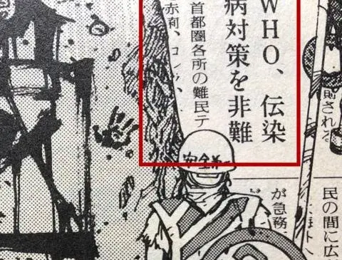 En el tercer tomo del manga algunos fans encontraron aterradoras similitudes con la actual realidad de los gobiernos y sus padecimientos con el coronavirus; en ese escenario postapocalíptico, las calles de la ciudad están tomadas por protestas contra el gobierno y en uno de los carteles que aparece en una escena se puede leer que la WHO (Organización Mundial de la Salud por sus siglas en inglés) critica las medidas contra la epidemia por parte de los gobiernos.