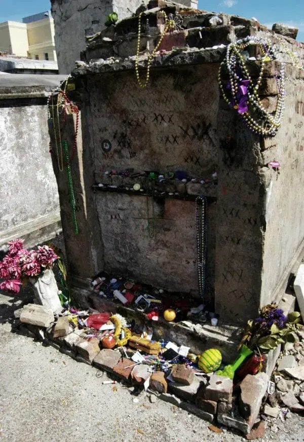 Actualmente, su tumba se encuentra en el cementerio de San Luis de Nueva Orleans y está entre la lista de las diez tumbas más visitadas a nivel mundial; a pesar de está prohibido, muchos visitantes acuden a su tumba para escribir tres X, ya que según la leyenda si lo haces Marie Laveau te concederá un deseo, sin importar su naturaleza.